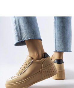 De beige sneakers met een dikke plateauzool van Seluci zijn de perfecte schoenen voor de lente en de zomer. Gemaakt van hoogwaardig ecologisch leer, bieden ze comfort en duurzaamheid. De lage hoogte maakt ze ideaal voor dagelijks gebruik, en de beige rubberen zool voegt een trendy afwerking toe. De vetersluiting zorgt voor een gemakkelijke pasvorm. Deze sneakers zijn de ideale keuze voor mensen die zowel comfort als stijl waarderen. Perfect voor dagelijkse outfits.