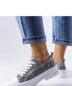 Grijze geruite McKeylor sneakers zijn een uitstekende keuze voor het komende seizoen. Gemaakt van hoogwaardig textiel, hebben ze een ronde neus en zijn ze gemonteerd op een platform met zichtbare zool. De binnenkant van de schoenen heeft een comfortabele zachte inlegzool, waardoor ze comfortabel zijn om te dragen. De sneakers hebben een modieuze zool, wat ze tot een ideale aanvulling maakt op de zomergarderobe. De schoenmaten zijn standaard, dus we raden aan om uw eigen maat te kiezen. De schoenen hebben een vetersluiting en een witte rubberen zool. Een uitstekende keuze voor mensen die comfort en een modieuze uitstraling waarderen in het dagelijks leven.