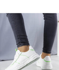 Witte sneakers Nettie zijn de perfecte zomerschoenen. Ze hebben groene accenten die hen karakter en stijl geven. De comfortabele vetersluiting zorgt voor een perfecte pasvorm aan de voet. De zool is gemaakt van hoogwaardig rubber, wat duurzaamheid en draagcomfort garandeert. Deze sneakers zullen een uitstekende aanvulling zijn op de zomergarderobe en zullen een frisse touch toevoegen aan elke outfit.