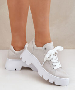 Dames sneakers van het merk Chebello. Gemaakt van hoogwaardig natuurlijk leer, garanderen duurzaamheid en comfort. Geplaatst op een plateau en platte hak, bieden ze stabiliteit en comfort gedurende de hele dag. Afgeronde neuzen geven ze een subtiele, vrouwelijke uitstraling, en de stijlvolle snit zorgt ervoor dat ze goed passen bij zowel casual als meer elegante outfits. Dit is de perfecte keuze voor vrouwen die mode willen combineren met comfort.