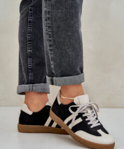 Trendy dames sneakers, gemaakt van natuurlijk leer. Dit is de perfecte combinatie van stijl en comfort. Lage, veterschoenen passen perfect bij zowel casual als meer elegante outfits. Het zachte voetbed zorgt voor comfortabel dragen gedurende de hele dag. Ideaal voor wandelingen in de stad, winkelen of ontmoetingen met vrienden, ze vormen een modieuze en praktische toevoeging aan elke garderobe.
