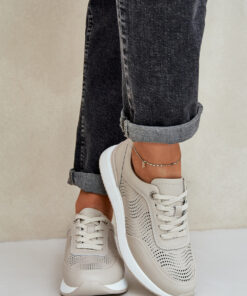 Sportschoenen voor dames gemaakt van natuurlijk leer zijn een ideale keuze die stijl en comfort combineert. Geplaatst op een platform bieden ze lichtheid en stabiliteit. De vetersluiting maakt een perfecte pasvorm mogelijk en het leren Comfort Shoes voetbed garandeert comfort gedurende de hele dag. Licht en comfortabel, deze schoenen zijn een uitstekende keuze voor dagelijks gebruik.