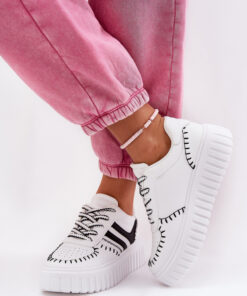 Stijlvolle damessneakers van imitatieleer die een moderne uitstraling combineren met comfort. Geplaatst op een platform, bieden ze comfort en een modieuze uitstraling. Binnenin bevindt zich een schuimrubberen inlegzool bedekt met materiaal, wat zorgt voor uitstekende demping en comfort gedurende de hele dag. De afgeronde neuzen voegen lichtheid toe en zorgen voor bewegingsvrijheid. Deze sneakers zijn een ideale keuze voor veel verschillende stijlen, waarbij elegantie wordt gecombineerd met een casual uitstraling, perfect passend bij zowel sportieve als dagelijkse outfits.