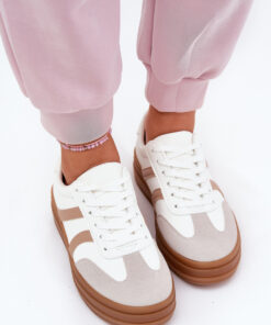 Dames sneakers gemaakt van ecologisch leer. Geplaatst op een platform, wat de silhouet visueel slanker maakt. Afgeronde neuzen garanderen comfort gedurende de hele dag. De schuimrubberen inlegzool bedekt met materiaal zorgt voor voldoende demping. Deze sneakers zijn een ideale keuze voor dagelijkse styling, waarbij functionaliteit wordt gecombineerd met een moderne uitstraling.