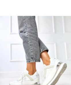 Moderne damessportschoenen gemaakt van duurzaam ecologisch leer, die comfort combineren met een trendy design. Het model heeft een ronde neus en klassieke vetersluiting, waardoor de schoen perfect op de voet past. De 6,5 centimeter hoge plateauzool voegt lichtheid toe aan de silhouet en zorgt voor extra comfort tijdens het lopen. Het interieur is afgewerkt met stof, wat zorgt voor ademend vermogen en comfort gedurende de hele dag. Dit zijn stijlvolle en functionele sportschoenen, ideaal voor dagelijkse, stedelijke styling en een actieve levensstijl.