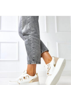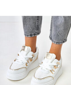 Moderne damessportschoenen gemaakt van duurzaam ecologisch leer, die functionaliteit combineren met trendy design. Het model heeft een ronde neus, vetersluiting voor een perfecte pasvorm en een gevlochten inzetstuk aan de voorkant dat de schoenen karakter en unieke stijl geeft. De 5 centimeter hoge zool zorgt voor lichtheid bij het lopen en het interieur afgewerkt met stof garandeert comfort gedurende de hele dag. Dit stijlvolle en functionele sportschoeisel is ideaal voor dagelijkse, stedelijke styling.