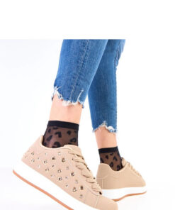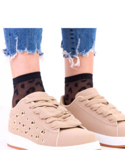 Dames sportschoenen met een modieus, casual karakter, gemaakt van suède-achtig ecologisch leer. Het model met veters en decoratieve studs onderscheidt zich door een modern ontwerp en stijlvolle afwerking. De lage pasvorm met een ronde neus en een zachte stoffen binnenzool zorgen voor comfort, terwijl de platformzool van 3 cm hoogte comfort toevoegt en subtiel de silhouet verheft. Ideaal voor dagelijkse, stedelijke styling.