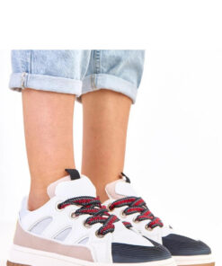 Sportschoenen met dikke veters zijn een modieus en comfortabel model voor dagelijks gebruik. Gemaakt van ecologisch leer, combineren ze duurzaamheid met modern design, en de ronde neus zorgt voor comfort tijdens langdurig dragen. Het platform van 3 cm hoog voegt enkele centimeters toe aan de lengte en dempt de stappen licht, terwijl de stoffen inlegzool het comfort van gebruik verhoogt. Dikke veters benadrukken niet alleen het sportieve karakter van de schoenen, maar zorgen ook voor een goede pasvorm om de voet.