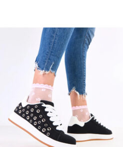 Damessneakers met een modieus, casual karakter, gemaakt van suède-achtig ecologisch leer. Het model met veters en decoratieve studs onderscheidt zich door een modern ontwerp en stijlvolle afwerking. De lage pasvorm met een ronde neus en een zachte stoffen binnenzool zorgen voor comfortabel dragen, terwijl de 3 cm hoge platform zorgt voor extra comfort en op een subtiele manier de silhouet verhoogt. Ideaal voor dagelijkse, stedelijke styling.