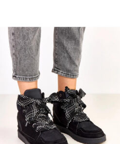 Moderne en comfortabele damessportschoenen gemaakt van suède ecologisch leer, die sportieve karakter combineren met trendy design. Dikke veters geven ze een originele, opvallende uitstraling, terwijl de ronde neus comfort biedt tijdens het lopen. Het model heeft een plateauzool van 2,5 cm hoog die subtiel de silhouet verhoogt, stabiliteit en comfort biedt. De stoffen inlegzool verhoogt het draagcomfort gedurende de hele dag. Het is de perfecte keuze voor vrouwen die een trendy sportieve stijl, comfort en modern design waarderen voor dagelijkse, casual outfits.