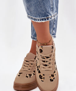 Dames sneakers op een platform zijn een combinatie van moderne stijl en draagcomfort. Het model met vetersluiting en een uitneembare schuimrubberen binnenzool zorgt voor een uitstekende pasvorm en comfort gedurende de hele dag. De schoenen onderscheiden zich door modieuze patronen die ze karakter geven en ervoor zorgen dat ze een opvallend element worden in elke outfit. Ideaal voor dagelijkse, stedelijke looks waarbij vrijheid en stijl belangrijk zijn.