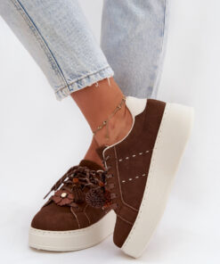 Stijlvolle damessneakers van imitatie suède zijn de perfecte combinatie van comfort en stijl. Het model op een subtiele platform verhoogt subtiel de silhouet, zorgt tegelijkertijd voor comfort tijdens het lopen. Decoratieve pompons op de veters voegen een meisjesachtige charme toe en onderscheiden de schoenen van klassieke sneakers. De schuimrubberen binnenzool, extra bekleed met zacht materiaal, garandeert comfort, zelfs bij langdurig dragen. Dit is een geweldige keuze voor dagelijkse stedelijke outfits.