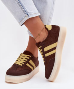 Stijlvolle damessneakers van imitatiesuède zijn een combinatie van een modieuze uitstraling en comfort voor dagelijks gebruik. Het model op een platform benadrukt subtiel de silhouet, zorgt tegelijkertijd voor stabiliteit en draagcomfort. Aan de zijkanten bevinden zich twee decoratieve banden die een sportief-stedelijk karakter geven. Het zachte foamvoetbed, extra bedekt met materiaal, garandeert comfort, zelfs bij langdurig gebruik. Deze sneakers zijn perfect voor dagelijkse outfits.