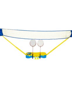 Vanaf nu kun je overal een potje badminton spelen! Leg de koffer neer op een vlakke ondergrond, schuif de telescopische buizen uit, plaats ze aan de zijkant van de koffer en span het net: de set is klaar voor gebruik! Omdat je de koffer als basis gebruikt, is dit erg stabiel. In de koffer vind je alles wat je nodig hebt: twee shuttles, twee badmintonrackets en een handleiding. Afmetingen uitgeklapt: 3 meter breed en 154 cm hoog. Geschikt voor kinderen vanaf 7 jaar.