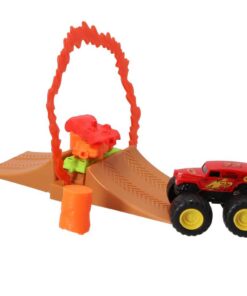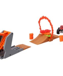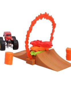 Beleef spannende stunts met deze geweldige stunt en racebaan set. Lanceer de monster truck zodat hij genoeg snelheid heeft. Lukt het om over de gestapelde auto’s heen te springen en door de vlammende ring te komen? Of wordt het een keiharde crash? Geschikt voor kinderen vanaf 3 jaar.