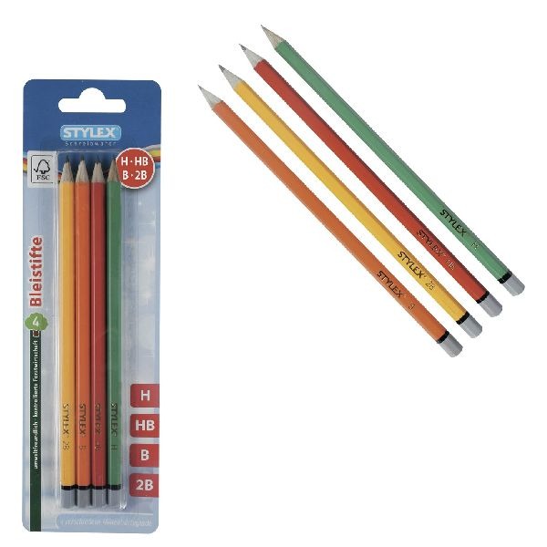 Stylexpotloden, in 4 verschillende hardheden: H Hb B 2B. Vervaardigd van FSChout.