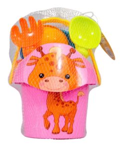Maak een dagje strand nog leuker met dit Summertime 7-delige emmerset. Het emmertje heeft een gezichtje van een giraf, leeuw of olifant. Het setje bestaat uit een emmer, een zeef, 2 zandvormen, een harkje, een schepje en een gietertje. Geschikt voor kinderen vanaf 18 maanden. U kunt niet kiezen, maar ontvangt een willekeurige uitvoering.