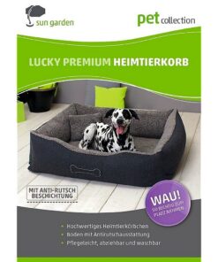 Het Duitse bedrijf Sun Garden, bekend van o.a. kwaliteitsmatrassen en boxsprings heeft nu ook luxe kleden en (orthopedische) kussens voor huisdieren ontwikkeld. Uw hond kan heerlijk ontspannen liggen in de comfortabele hondenmand Lucky. Het binnenkussen is omkeerbaar en heeft aan de ene zijde zacht pluche en aan de andere zijde robuust geweven katoenen stof. Met een extra wasbaar pluche kussentje.