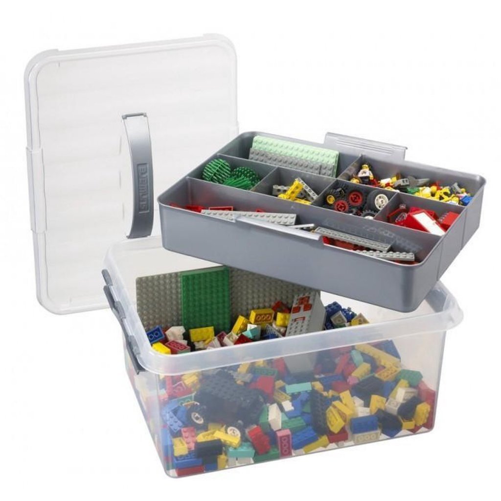 Een praktische en multifunctionele alleskunner! Deze box van Sunware wordt standaard geleverd met een handige inzet met vakverdeling. Hierdoor kun je kleinere spullen & accessoires opbergen met je bijbehorende grotere voorwerpen. Zo houd je setjes en spullen bestaande uit meerdere onderdelen netjes bij elkaar. Deze 15 liter opbergbox met inzet is vooral geschikt voor het bewaren van bijvoorbeeld knutsel- & hobbyspullen, naaispullen etc. Kortom, je spullen om je creatieve hobby uit te oefenen zitten in deze opbergbox veilig opgeborgen. Ook kan hij dienen als dierverzorgingskoffer, speelgoed box, viskoffer of zelfs Doe-Het-Zelf en gereedschaps box. Kortom, er zijn eindeloos veel mogelijkheden te bedenken met deze box. Zoals alle Q-line boxen is ook de deze box uitgerust met stevige sluitclips zodat het deksel goed op zijn plaats blijft. Daarnaast zit er in het deksel een handgreep voor extra draagcomfort. De box is transparant zodat je in één oogopslag kunt zien wat erin zit.