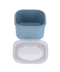 Een set van 3 kleinere blauwe lunchbakjes met transparante deksels. Bakjes kunnen op elkaar vastgedraaid worden.