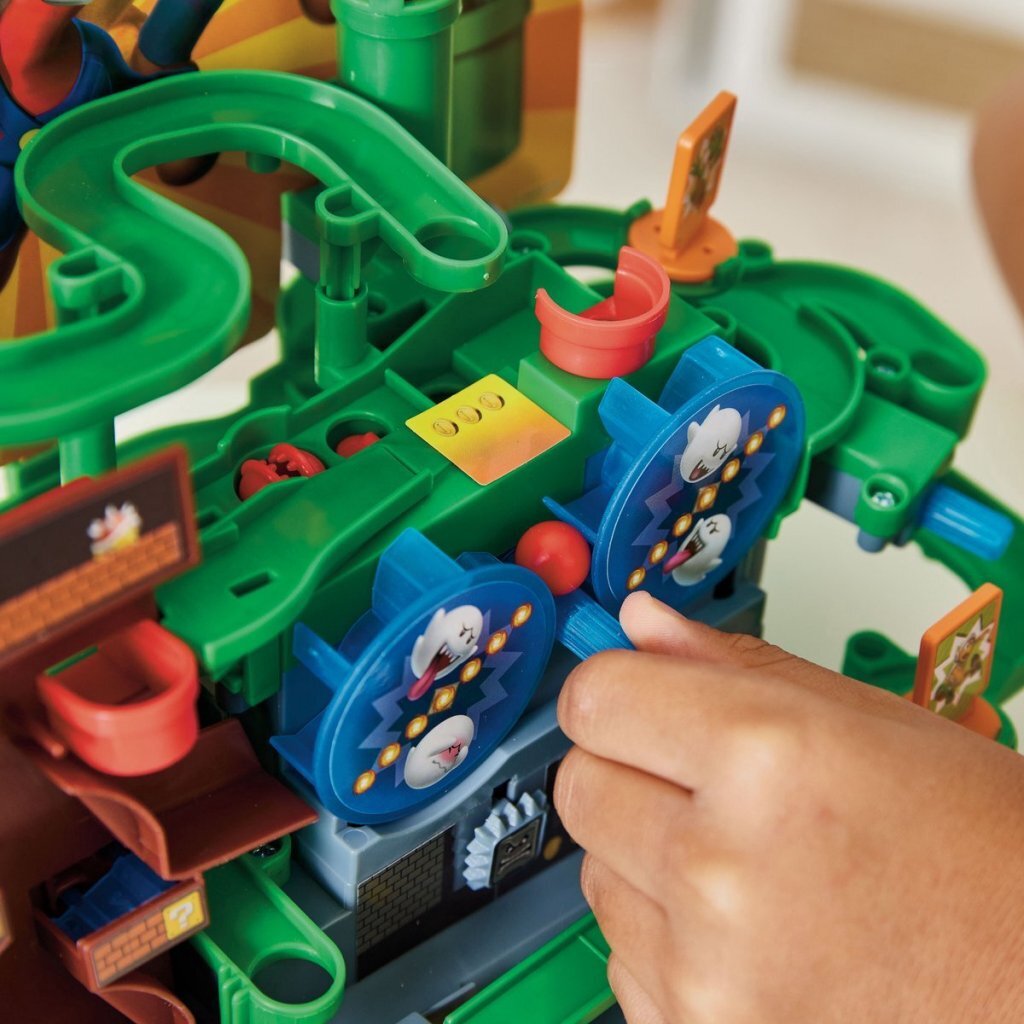 Spannend actiedoolhof ontworpen en geĆÆnspireerd door de wereld van Super Mario! Lever jer knikker voorzichtig af met behulp van de 3 knoppen en 2 draaiende wielen die door de 7 lastige zones gaan om het doel te bereiken! Veel trucjes en bewegingen zonder batterijvoeding. Geweldige keuze voor verjaardag en vakantie cadeaus! Voor 1 speler tegelijk. Je kunt de speelwaarde opwaarderen door simpelweg de karakterplaat te wisselen naar een van de figuren uit LINK SYSTEM-spellen (apart verkrijgbaar)! Geschikt voor kinderen vanaf 5 jaar.