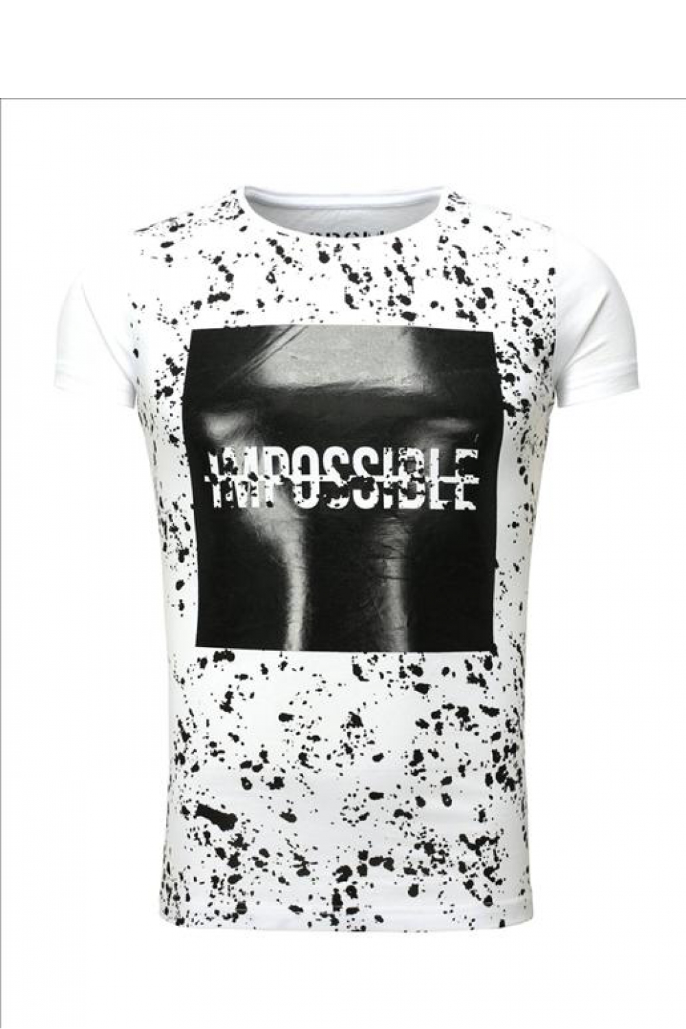 Heren-T-shirt met korte mouwen. Voorkant met patroon en opdruk.
