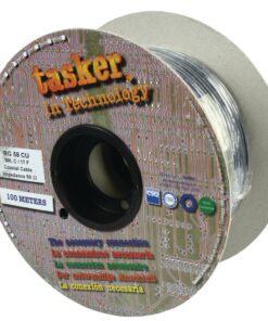 Tasker professionele coax kabel, 50 Ohm, zwart, 100m rol.