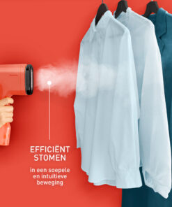 Altijd bij de hand, stoom elke kledingstijl waar je ook bent Maak kennis met de Tefal Pure POP, je persoonlijke kledingstomer waarmee je er altijd stijlvol uitziet, ook onderweg. Deze handzame kledingstomer is zeer intuïtief en biedt volledige verzorging in één soepele en natuurlijke beweging. Het exclusieve omkeerbare pluis- en fluwelen opzetstuk zorgt voor moeiteloos wisselen, met een ultracompact en slank ontwerp om overal mee naartoe te nemen! Met Pure POP til je kledingverzorging naar een heel nieuw niveau… en dat alles met een vleugje sprankelende stijl.