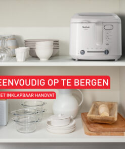 Bespaar ruimte in je keuken en kook toch voor het hele gezin! De Tefal Uno friteuse is de compacte frituurpan met een ruime inhoud van 1 kg voor maximaal 4 personen. Ondertussen besparen de compacte afmetingen en het inklapbare handvat ruimte, waardoor je hem in elke keuken kunt opbergen. De Uno is uitgerust met handige functies zoals een groot kijkvenster, een automatische deksel, en een regelbare thermostaat voor het frituren van alle soorten heerlijk eten.