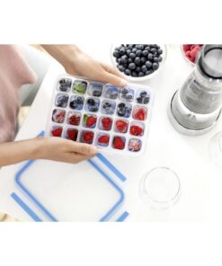 - Verwijder de ijsblokjes heel makkelijk door op de rubberen onderkant te drukken