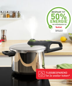 Dankzij een snelkookpan staat je maaltijd in no-time op tafel! Met een snelkookpan kook je de ingrediënten onder druk op een hogere temperatuur dan normaal. Hierdoor ben je 2 x zo snel klaar en bespaar je 50% aan energie.