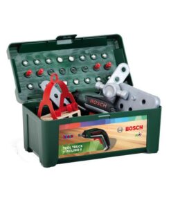 StoereBosch gereedschaps truckmet Ixolino 2 en andere tools vanTheo Klein.Talloze op- en afbouwmogelijkheden van truck tot zware transporter zijn met de Bosch schroef truck 1:24 te monteren en te demonteren. De gereedschapskist kan worden verwijderd. Aanhangwagen, kraan en vorkheftruck met pallet zijn in de set inbegrepen.