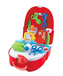 Ga op pad en help de mensen met deze mooie Toi-Toys dokterset in handige hard cover koffer, die je kunt dragen als rugzak! De 20-delige set heeft leuke accessoires, zoals een stethoscoop, schaar, tang, kniehamer, oorkijker, pillenpotje, spuit, pincet, scalpel, doosje om pleisters in te bewaren etc.Geschikt voor kinderen vanaf 4 jaar.
