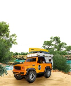 De auto met frictie heeft geluidseffecten, en lichteffecten in de vorm van werkende lampen. Boven op de auto ligt een kano, waarmee leuk gespeeld kan worden. Geschikt voor kinderen vanaf 3 jaar.