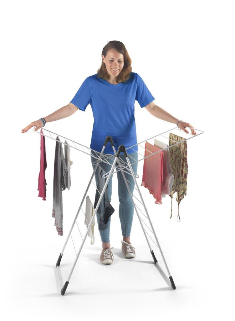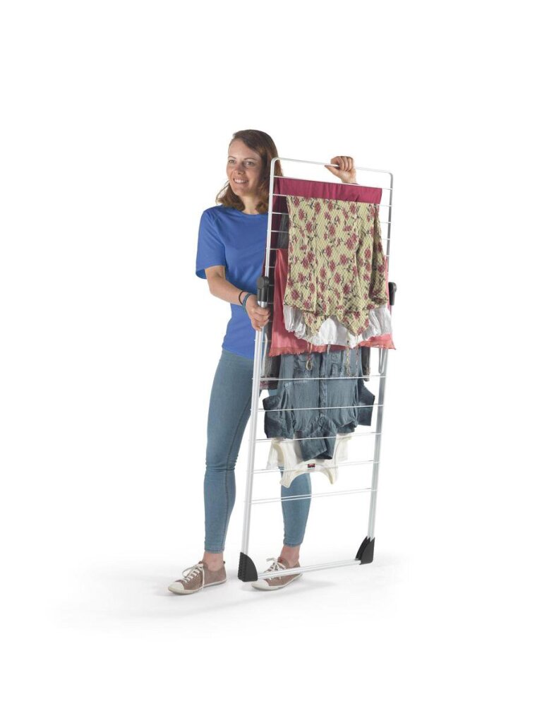 - Makkelijk verplaatsen van het droogrek met of zonder was.