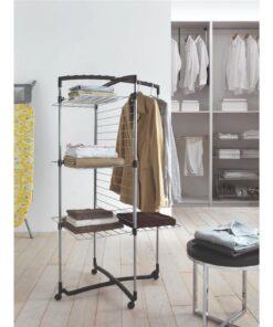 De Tomado Metaltex Faro droogtoren met 28 meter drooglengte is zeer geschikt voor het drogen van een grote was. De Faro Plus past in kleine ruimtes dankzij zijn vorm. Je kunt kiezen of je alle rekken gebruikt of slechts een paar, hiervoor kun je de droogtoren half openen en deze tegen de wand plaatsen. Je kunt hem ook helemaal openen en er bijvoorbeeld een lange badhanddoek op laten drogen.