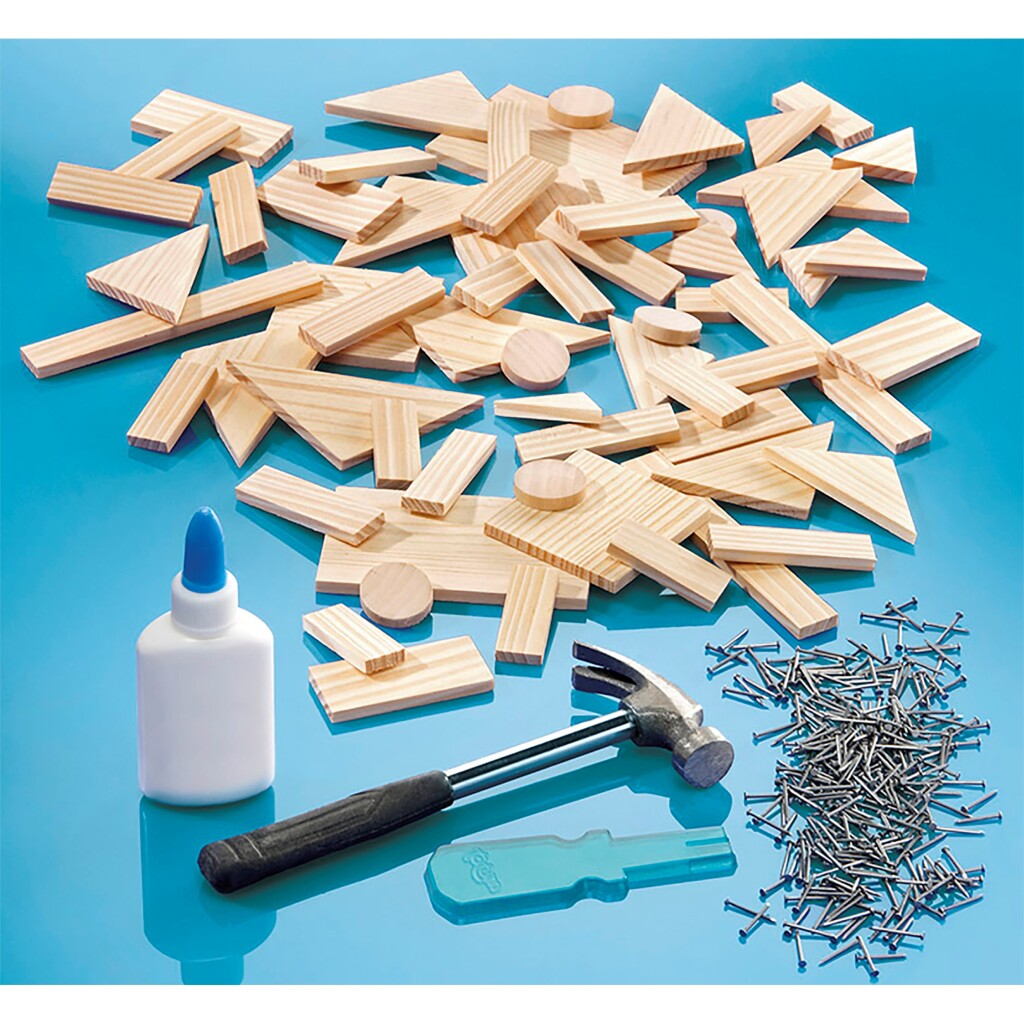 Maak de mooiste creaties van hout met deze set. Maak de voorbeelden na of verzin zelf iets leuks!