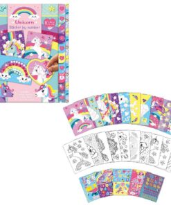 Boekje met 10 stickerpuzzels gescheiden door tabbladen, 5 stickervellen incl. 2 holografische en 10 kleurplaten. Goed voor de motoriek, leren tellen en nummer- en vormenleer. Holografische harde kaft, ringband, leuk voor thuis en onderweg.