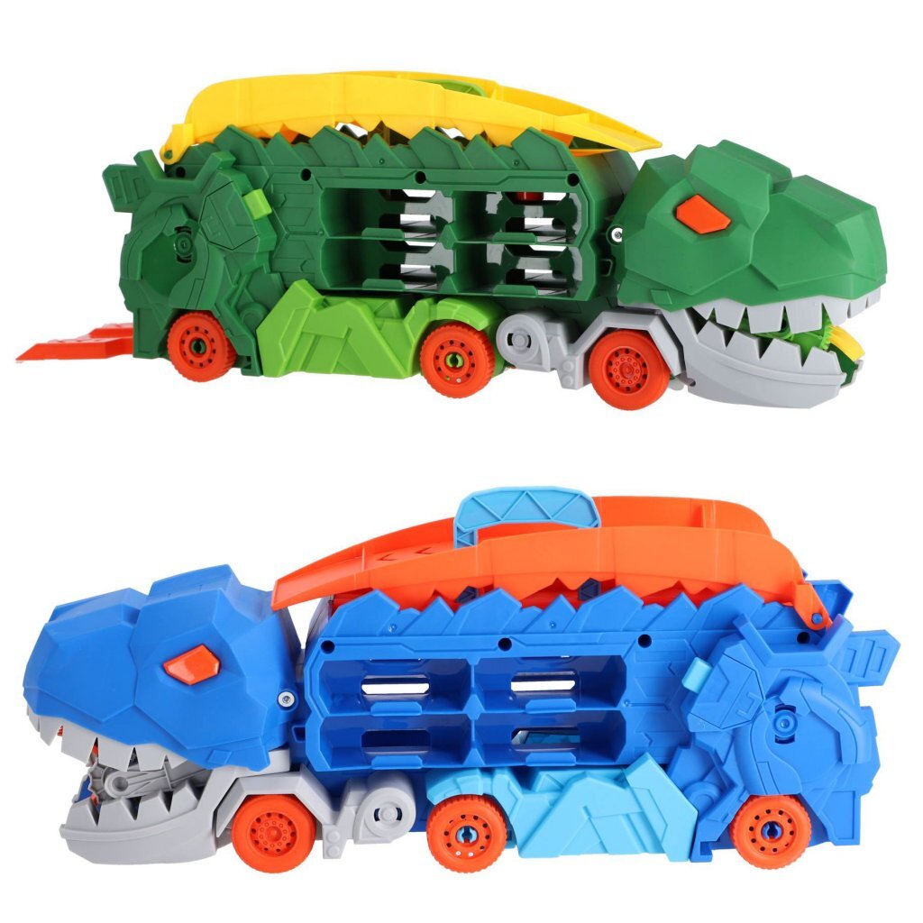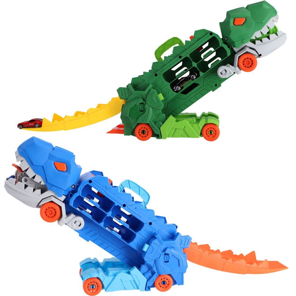 Transportwagen, racebaan, én dinosaurus in één speelgoed! Deze vrachtwagen kun je gebruiken om je auto’s in the bewaren. Plaats hem rechtop en zie hoe de auto’s van de helling af racen. Inclusief 2 metalen voertuigen. De stoere dinosaurus kan zelfs auto’s opeten en vermalen met zijn cirkelzaag! Geschikt voor kinderen vanaf 3 jaar. Verkrijgbaar in verschillende uitvoeringen. U kunt niet kiezen, maar ontvangt een willekeurige uitvoering.