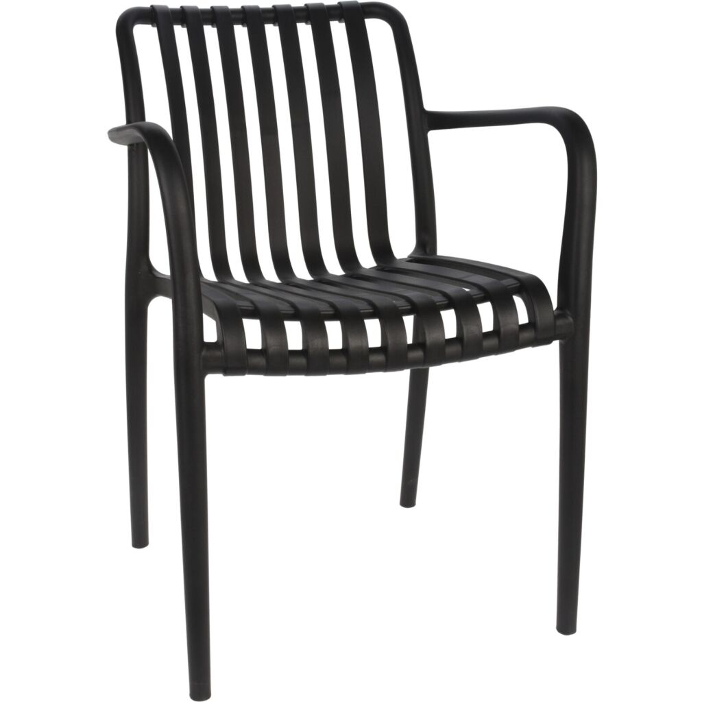 Een eenvoudig zwarte stoel voor buiten in de tuin, op het balkon, etc. Bestand tegen de invloed van regen, zonlicht, etc.