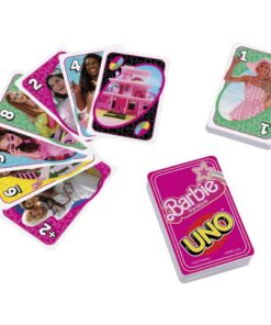 De kaarten bevatten afbeeldingen die zijn genspireerd op favoriete personages en scnes uit de film. Spelers combineren nog steeds kleuren en getallen en er is zelfs een regel ‘Met te veel gespeeld’, waarbij spelers zowel kaarten moeten afleggen als pakken. En vergeet vooral niet UNO! te roepen als je nog n kaart over hebt! Dit is een geweldig cadeau voor fans van Barbie en liefhebbers van kaartspelletjes vanaf 7 jaar.