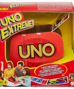 Deze editie van UNO Extreme heeft een vernieuwde kaartlanceerder met een slank ontwerp die kaarten hoog in de lucht schiet. Coole lichten en geluidseffecten knipperen steeds sneller als de knop wordt ingedrukt, wat de spanning nog verder doet stijgen. De anticipatie die je voelt tijdens het wachten tot de kaarten worden gelanceerd is bijna ondraaglijk! Stapel de kaarten in de lanceerder en speel vervolgens ieders favoriete kaartspel. Als de Dat-is-vervelend-kaart tevoorschijn komt, kijk dan uit! Als spelers nog maar één kaart over hebben, moeten ze nog steeds ‘UNO!’ roepen! Wordt exclusief 3 C-batterijen geleverd. Geschikt voor 2 tot 10 spelers vanaf 7 jaar.