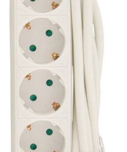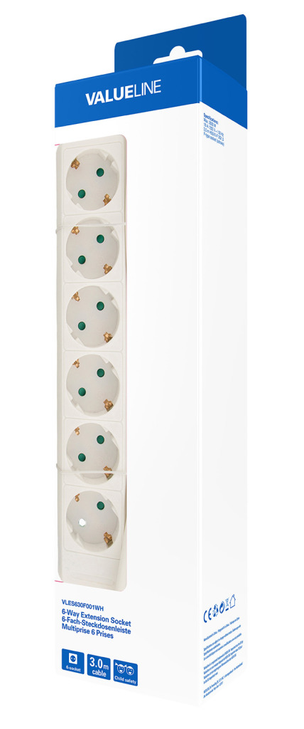 Stekkerdoos met kinderbeveiliging om een wandcontactdoos op te splitsen in zes stopcontacten. De stekkerdoos is uitgerust met een lange kabel om overal in huis of op kantoor elektrische apparaten van stroom te voorzien.