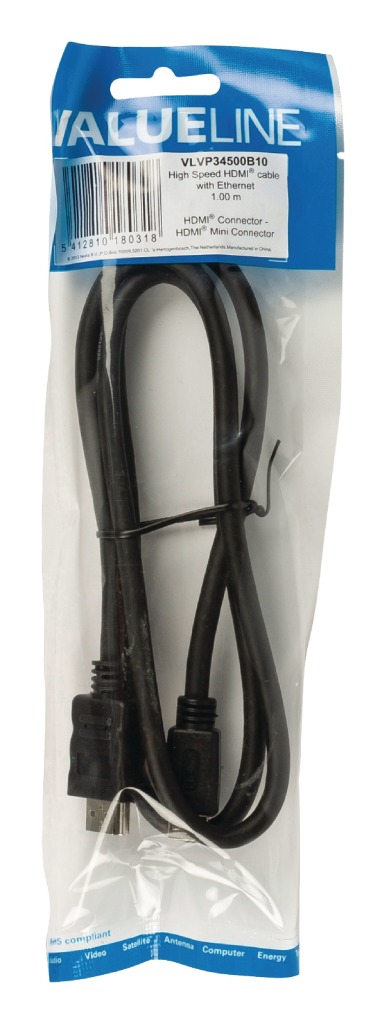Deze High Speed HDMI -kabel met ethernet is geschikt voor het netwerken van apparaten en kan videoresoluties van 1080p en hoger aan, waaronder geavanceerde display technologieën zoals 4K, 3D en Deep Color. De mini-connector stelt u in staat om uw apparaten te verbinden met een home cinema-set, LCD- of plasma TV.