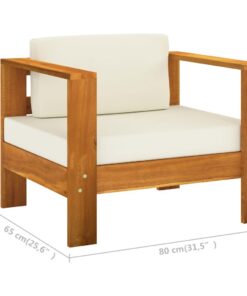 De tuinmeubelset is zorgvuldig gemaakt van massief acaciahout, waardoor hij stevig en duurzaam is en geschikt is voor buitengebruik. De dik gevoerde zit- en rugkussens bieden extra comfort tijdens het loungen. Het met olie afgewerkte oppervlak is gemakkelijk schoon te maken met een vochtige doek. Het stevige tafelblad is ideaal om drankjes en snacks binnen handbereik te houden.