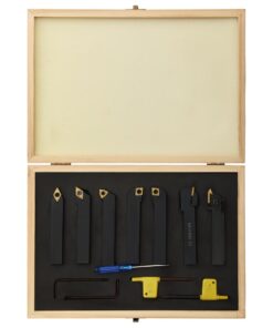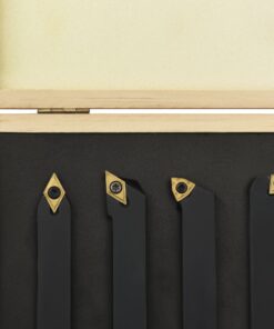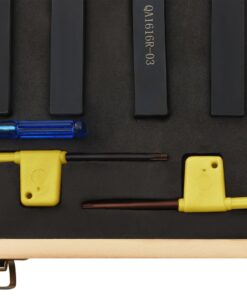 Deze gereedschappen zijn gemaakt van koolstofstaal en hardmetaal en bieden een hoge hardheid en kracht. Houders hebben een gladde zwarte oxide-afwerking, gemarkeerd met gereedschapshouderstijl en asmaat. Het inzetstuk van elk gereedschap is vervangbaar en indexeerbaar. De verwisselbare sleutels zijn bij de levering inbegrepen. De set wordt geleverd met een box voor eenvoudige opslag en transport.
