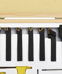 Deze gereedschappen zijn gemaakt van koolstofstaal en hardmetaal en bieden een hoge hardheid en kracht. Houders hebben een gladde zwarte oxide-afwerking, gemarkeerd met gereedschapshouderstijl en asmaat. Het inzetstuk van elk gereedschap is vervangbaar en indexeerbaar. De verwisselbare sleutels zijn bij de levering inbegrepen. De set wordt geleverd met een box voor eenvoudige opslag en transport.