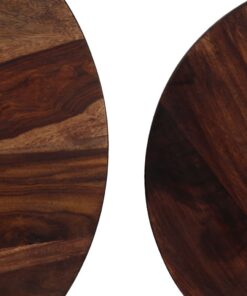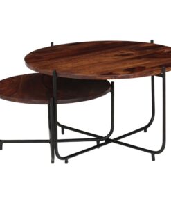 Deze set bestaat uit 2 houten salontafels die gemaakt zijn van massief acaciahout en staal. Ze geven je interieur een vleugje vintage charme. De tafels kunnen ook worden gebruikt als banktafels, bijzettafels, eindtafels of woonkamertafels.