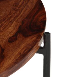 Het massief acaciahouten tafelblad biedt een stabiel oppervlak waarop je drankjes, een fruitmand, vaas en andere decoratieve voorwerpen kunt plaatsen. Acacia is een tropisch hardhout dat bekend staat om zijn rijke nerven en ook wel rozenhout of palissander genoemd wordt. De sterke stalen poten dragen bij aan de robuuste constructie en industriële uitstraling. Het fijne vakmanschap en de mooie houtnerven maken elk meubel uniek en net iets anders dan de rest. De kleinere tafel kan onder de grotere worden geplaatst om ruimte te besparen.