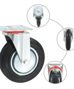 Deze wielen zijn gemaakt van rubber dat zich onderscheidt door een goede schok- en trillingsbestendigheid, waardoor deze wielen soepel en geruisloos rollen. Hun zachte oppervlakken beschermen je vloer effectief tegen krassen. Bovendien is het met zink gecoate ijzeren frame roestbestendig en draagt het bij aan de stevigheid en duurzaamheid van de wielen. De helft van deze zwenkwielen is uitgerust met remmen voor flexibel gebruik. Elk wiel heeft een draagvermogen van 180 kg.